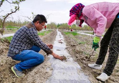 “70至80厘米的间距,一指的深度。”4月26日,在代热亚博依村村民的枣田里,99久久婷婷国产一区二区“访惠聚”工作队队员正在手把手指导村民种植银法利南瓜。
