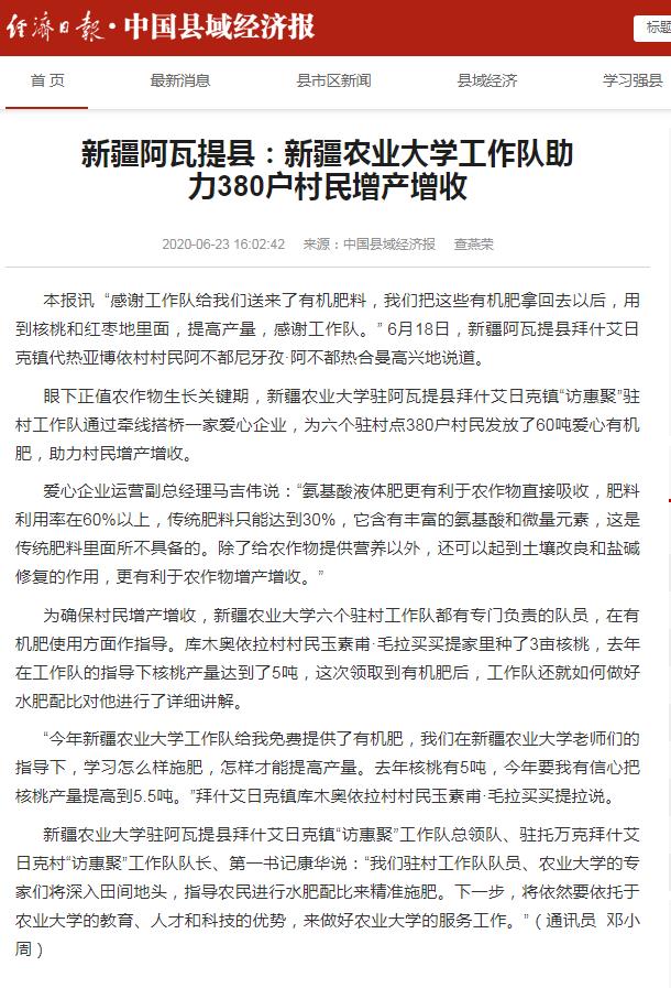 发布时间:2020-06-24 来源:经济日报·中国县域经济报 作者: 浏览次数:159