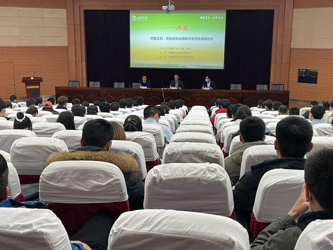 3月16日,由我校科学技术处主办、机电工程学院承办的“八一讲堂”第九期在会堂中心学术报告厅开讲,此次邀请机电工程学院刘湘江教授(浙江大学援疆干部)作了“农业信息感知与柔性传感器技术”的专题报告。