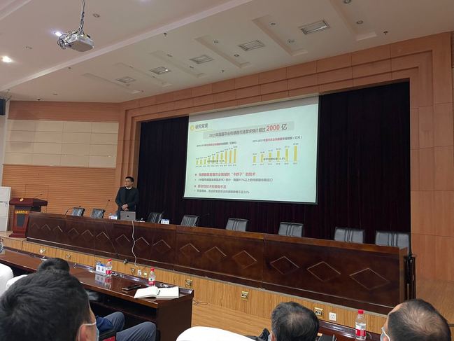 讲座中,刘湘江教授详细介绍了其本人的植物茎流传感器、活体原位感知SERS柔性可穿戴式传感器两项研究成果,并结合案例向在座师生展示了两项成果在农业生产中的应用场景和现实意义。