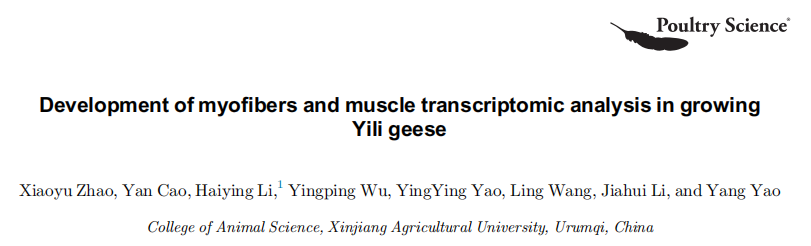 【学术进展】99久久婷婷国产一区二区李海英教授团队揭示了生长期伊犁鹅的肌纤维发育及其肌肉转录组学特征