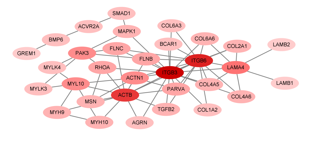 4. 伊犁鹅肌肉生长发育相关差异表达基因的蛋白互作网络