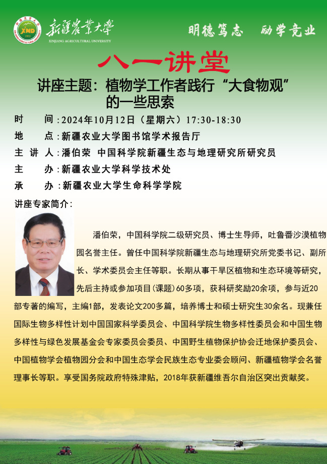 【八一讲堂预告】七十三期:植物学工作者践行“大食物观”的一些思索