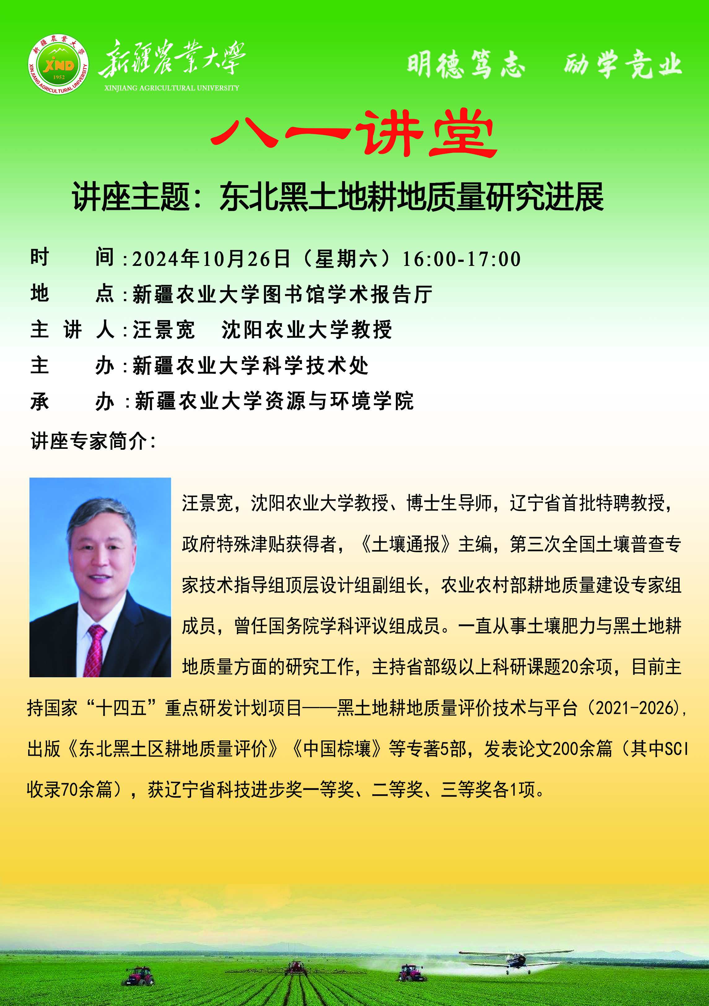 【八一讲堂预告】七十八期:东北黑土地耕地质量研究进展