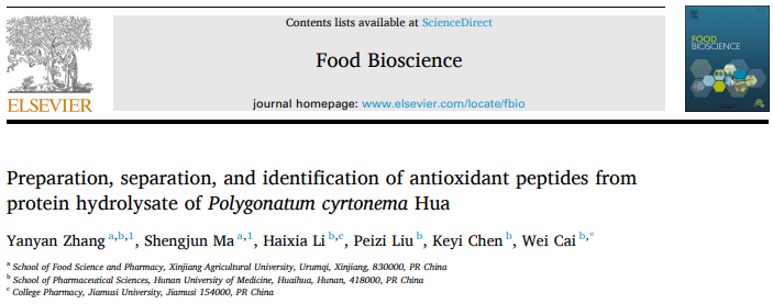 【学术进展】99久久婷婷国产一区二区马生军课题组提出了多花黄精水解蛋白抗氧化肽的制备、分离与鉴定方法