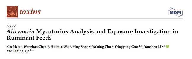 Keywords:Alternaria mycotoxin; ruminant feeds; LC-MS/MS; analysis; exposure investigation